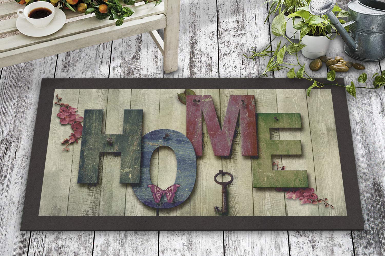 Size: 18"x30" - 1/4 thick - Material: %50 Polyester surface %50 pvc backing,Mabel Home Doormat can be used for welcome entrance door, patio, garage, laundry room, entryway or indoor usage such as for bathroom bedroom or kitchen doors. It has anti slip grip surface which prevents the slipping.,it can be easily cleaned by shaking, sweeping or hosing off, and easy back to original shape,One of the most important thing is; it is made of High-Quality PVC so it does not have a heavy rubber smell which makes it perfect to use for indoor and specially for pets,Our designs looks very stylish and because of low profile doesn't get stuck under the swinging doors